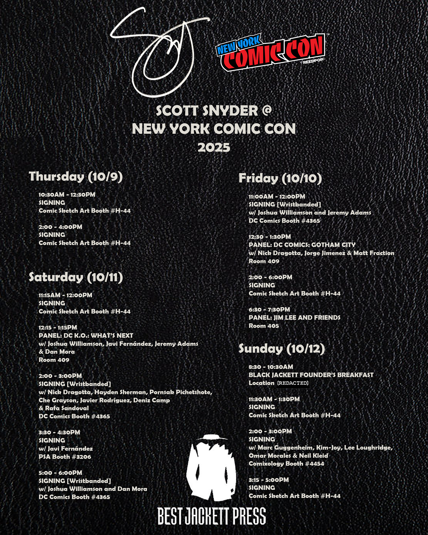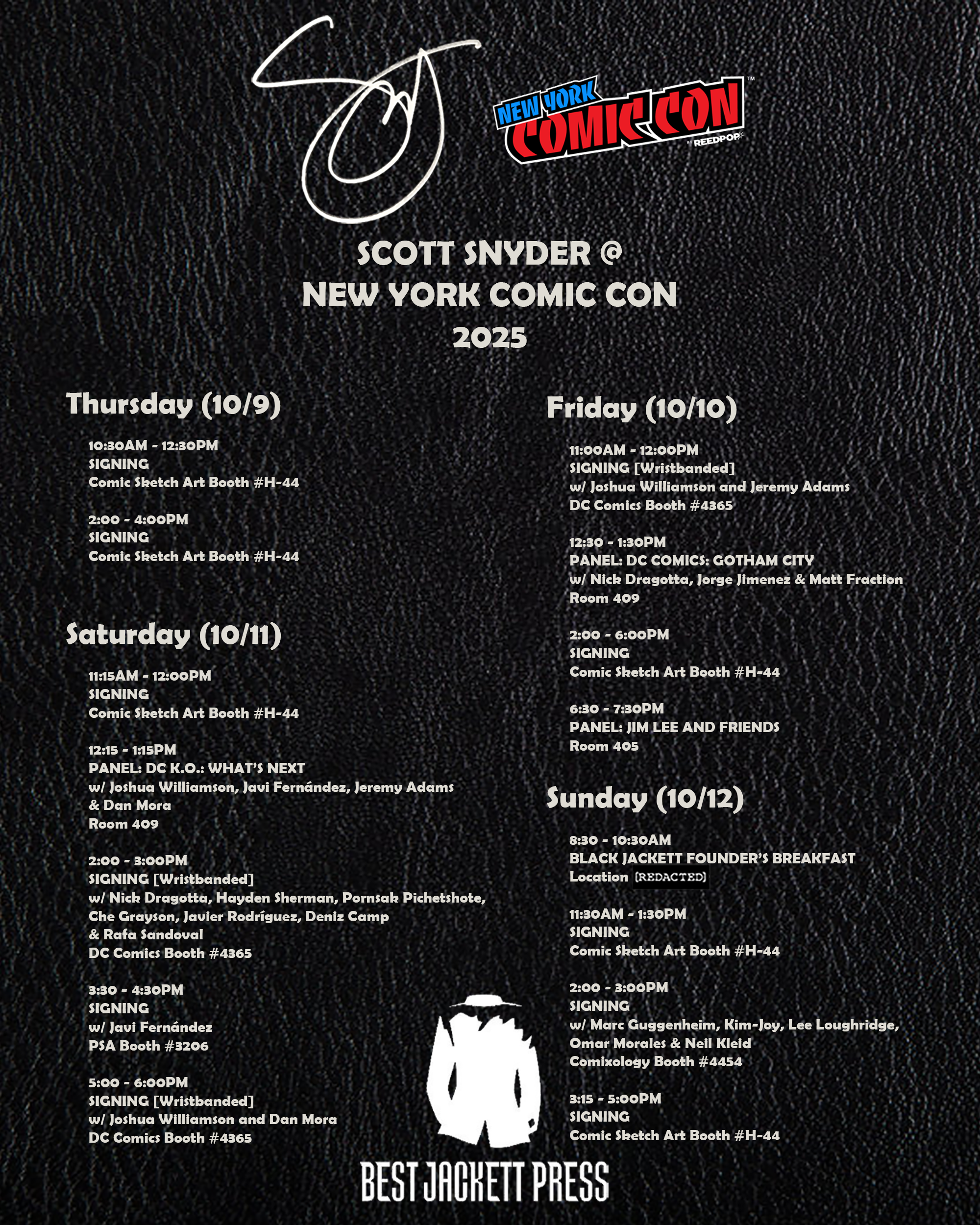 It’s really first come, first serve. I’ll try to do as much signing as I can at my booth. You got to get there way before the signing time. New York is a beat and if you want to get in there, you just got to line up, honestly. I’m really sorry. Or if you’re a paid subscriber and you do the $7/month (or $75/year) membership or you’re in the Black Jacket Club, which we do have a breakfast on Sunday for those founder’s tier members, then you can skip the line at the beginning of each signing. So be there at the very beginning and we’ll have a moment when people who are in Best Jacket with us here get to come up before. And it’s definitely worth it, I would say, for seven bucks to skip those lines that happened in New York. So you can still sign up now. So Tyler, the best assistant, will put the link right here.